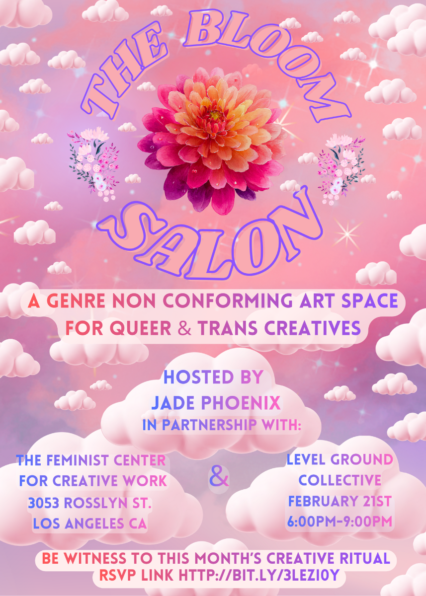 The Bloom Salon is an intimate, curated open mic for Queer & Trans creators to share works-in-progress or finished performances pieces within a held and intentional container. This is a space where liberation art—work born of rage, grief, hope, or collective dreaming—meets generous witness.